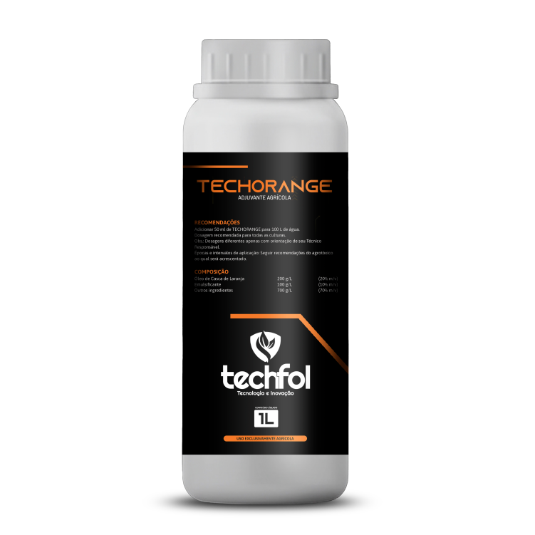 TECHORANGE é um adjuvante com propriedades de espalhante adesivo, contribuindo com a eficácia dos defensivos aplicados, também aumenta a eficácia no combate as pragas da lavoura.